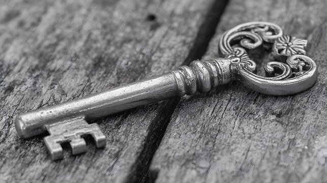 Shiny silver key is a common household item for standard locks. Suitable for security, home, access, protection concepts.