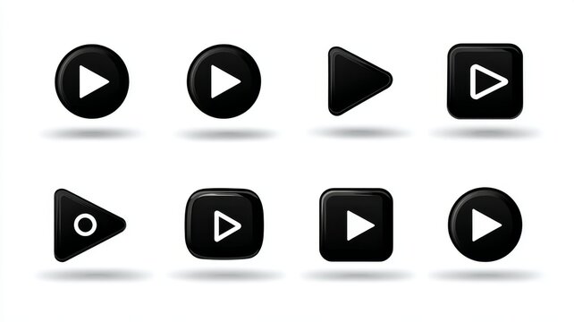 Set of video and audio play button silhouettes, collection of media control icons in black vector illustration on white background for digital, multimedia, streaming, and technology-themed design proj
