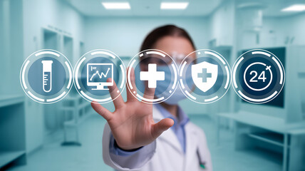 Healthcare professional using futuristic technology in clinical setting