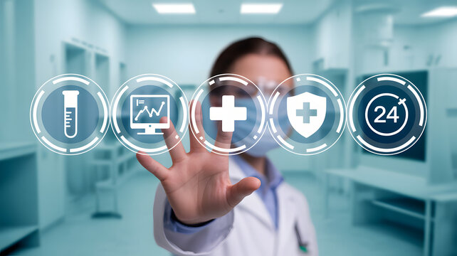 Medical Professional Using Futuristic Data Interface Images