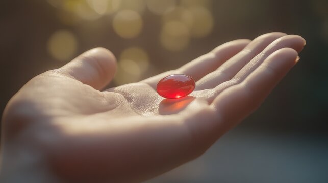 Hand Holding Transparent Capsule with Glowing DNA Helix Inside, Concept of Genetics, Medicine, and Biotechnology