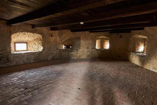 Old weathered stone wall of medieval fortress brick horizontal grunge background