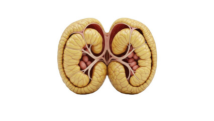 Cross section of human adrenal glands showing cortex and medulla with blood vessels isolated on a transparent background