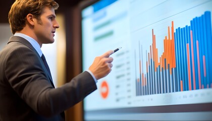 Businessman Presenting Data on a Large Screen