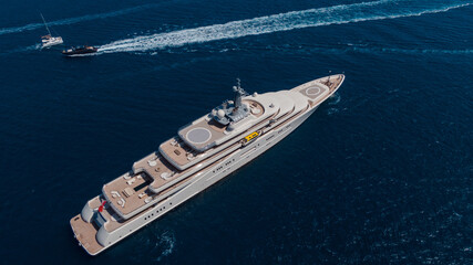 Sailing in Style: A Beautiful Silver Megayacht Seen from Above