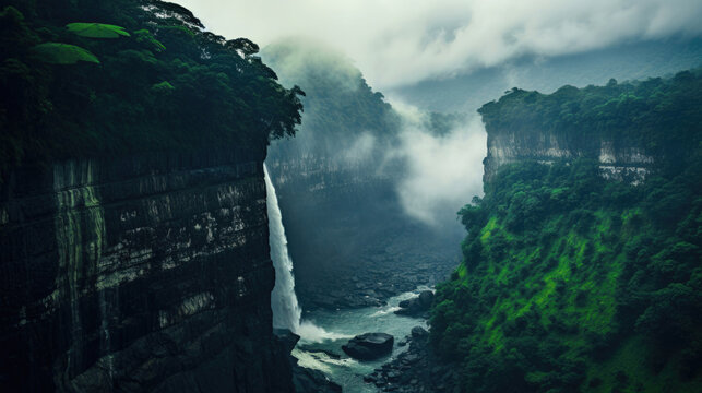 Meghalaya's Monsoon Symphony: Cherrapunji Waterfalls in Rainy Splendor