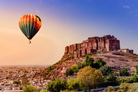 Mehrangarh Fort during sunrise at Jodhpur, Rajasthan with view of cityscape. Mehrangarh Fort is a UNESCO World Heritage site.