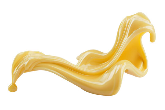 Bright splash of melted cheese against white backdrop. Saturated yellow, orange colors, wavy flow. Creamy dairy liquid concept for cheeseburger, pizza or sauce ad.