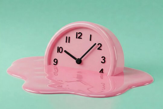 A surreal melting clock with distorted features, creating a visual representation of time distortion and the fluidity of temporal perception