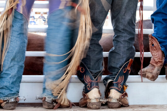 Galisteo, New Mexico, USA.  Motion Blur Cowboys at local rodeo