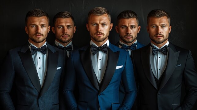 Stylish men in elegant tailored suits posed in studio