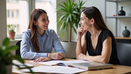 Mentor offering guidance in innovative workspace