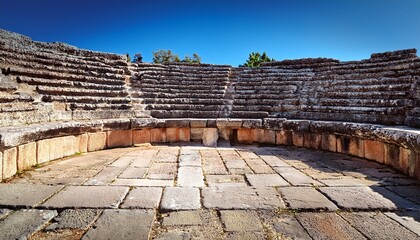 Merida, Spain. April 2019: Tourist crowd in the Antique Roman Theatre in Merida. Panorama image. The Archaeological Ensemble of Merida is declared a UNESCO World Heritage Site Ref 664