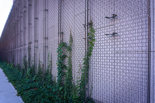 Background and texture of green ivy on climbing on metal netting