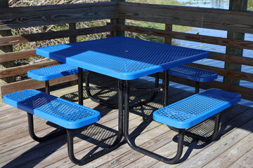 Blue and White Trucker Cap on Wooden Bench with Skateboard, blue and white cap mockup on wooden bench