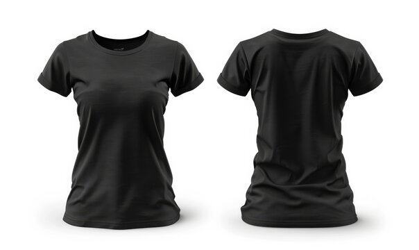 Blank black female t-shirt, template for your design mockup. Front and back view.