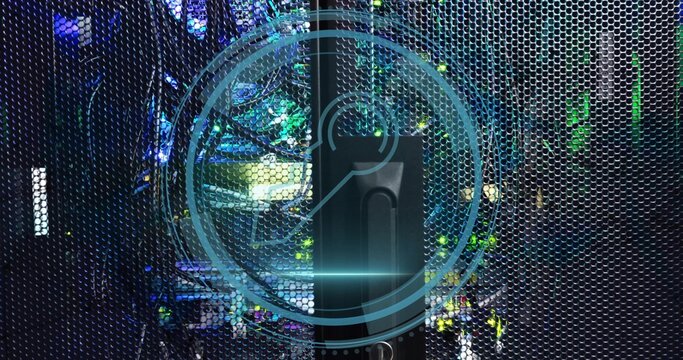 Green mesh overlay on digital data processing in servers