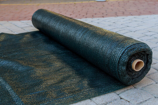 A roll of green shading netting. Artificial shading of plants or grapes.