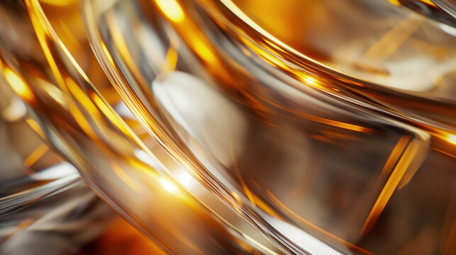 Curved forms blend shades of amber and silver to produce a mesmerizing effect, showcasing the beauty of fluid motion and light reflections in artistic expression.