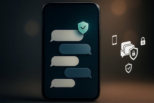 Secure chat app on a phone with encrypted message bubbles