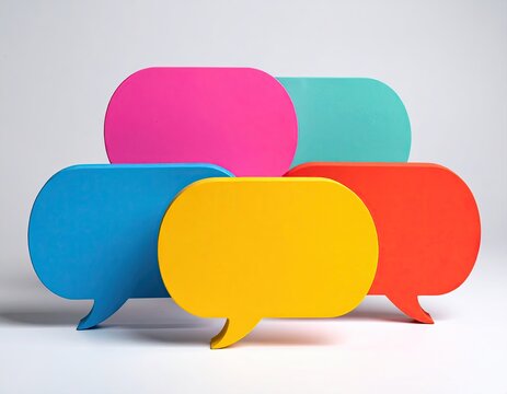 Five colorful speech bubbles, stacked and overlapping, on a white background