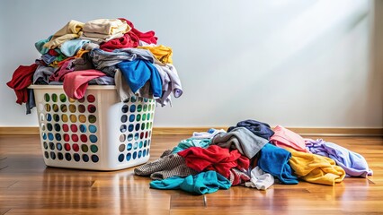 Heap of dirty clothes and laundry basket