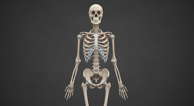 Full Human Skeleton on a Dark Background, Detailed Anatomical Study.