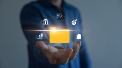 Open Data: Businessman touching connect to data information on cyberspace, transparency, accessibility, interoperability, collaboration, innovation.