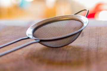 Metal mesh or Tea strainer.  Sieve for cooking cut out