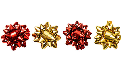 A single shiny red metallic gift bow decoration, isolated on transparent background
