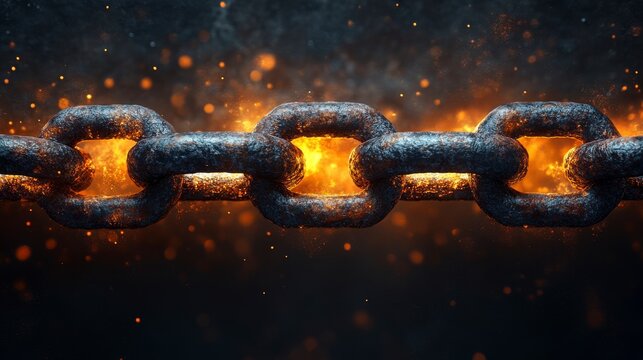 Two metal chains breaking apart with sparks, symbolizing strength, freedom, and the end of obstacles