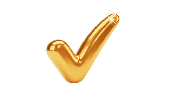 Golden check mark symbol isolated on transparent background