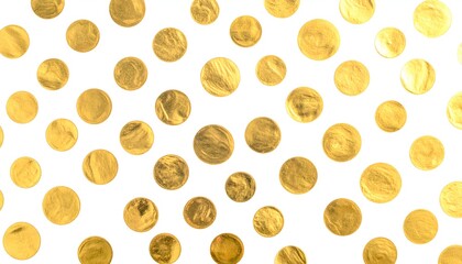 Scattered, textured golden circles on a bright white background, creating an abstract pattern