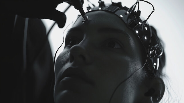 Futuristic measurement device displaying green waveform analyzing data, seismograph concept
