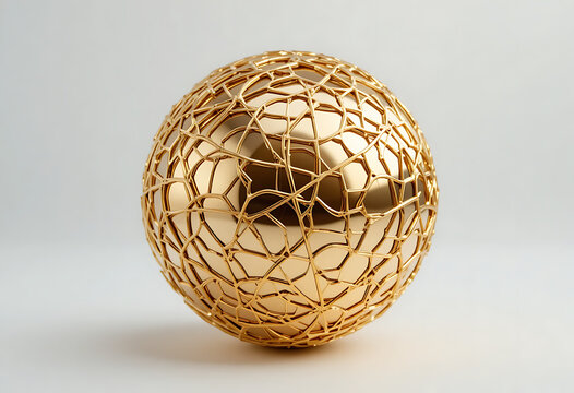 Glowing gold lattice network with illuminated nodes and geometric metal connections