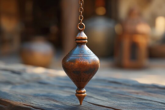 Gold metal pendulum on a white background. Holistic and energetic elements.