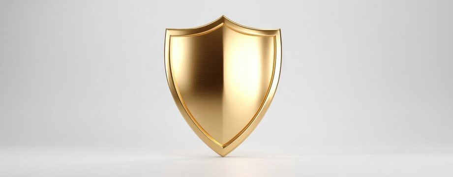 The shield gleaming gold on a minimalist white background symbolizing modern security