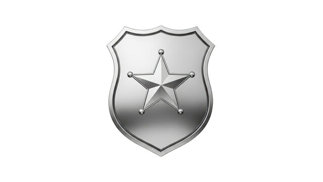 A shiny metallic law enforcement officers badge or sheriffs star shield symbolizes authority, justice, and protection for various governmental or securityrelated visual projects.