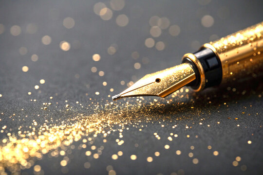 Close up of gold glitter stylus tip on dark surface background