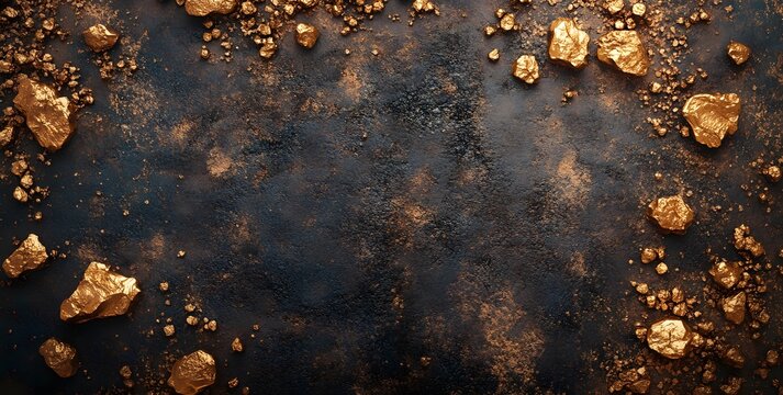 Gold nuggets on a background, top view, high resolution.