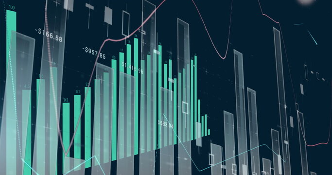 Bar charts displaying financial metrics in dashboard, with candlesticks, line graphs, data labels