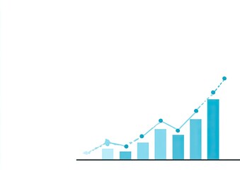 Ascending teal bar graph showing exponential growth with a dotted line highlighting the trend, suggesting increasing success or profit over time
