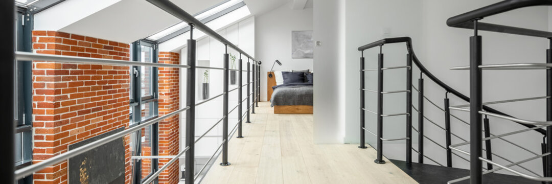 Corridor in modern loft apartment, panorama