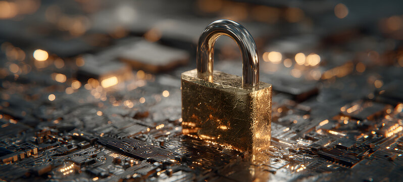 The Padlock on Circuit Board Representing Cybersecurity Data Protection and Digital Privacy