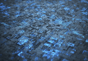 A seamless pattern of microchip textures with glowing connectors.