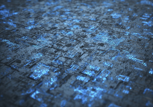 An electronic circuit board pattern with ICs and chipsets arranged in a beautiful order. Electronics illustrations