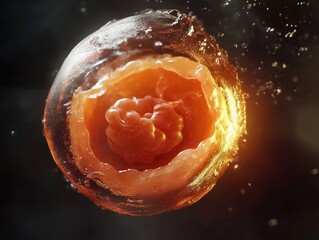 A stunning close-up of a biological cell, showcasing intricate details and vibrant colors in a dynamic setting.