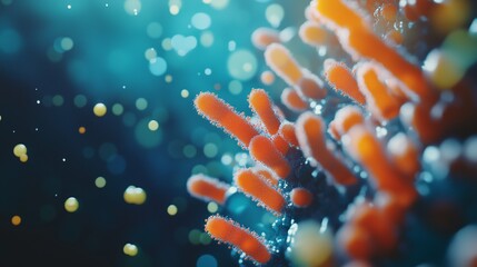 Microscopic view of various bacteria and viruses floating in a 3d rendered environment
