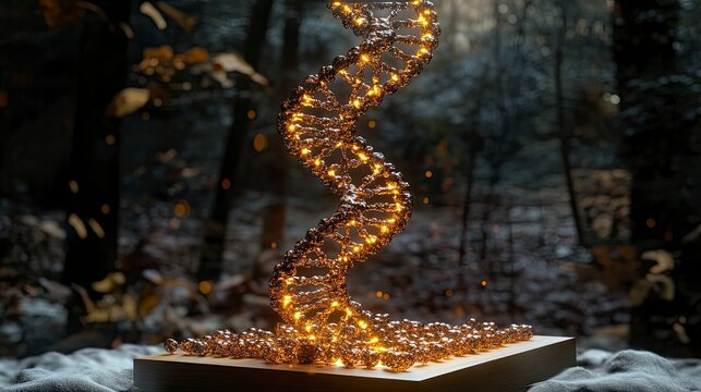 DNA double helix model suspended in space with dramatic side lighting and dark background