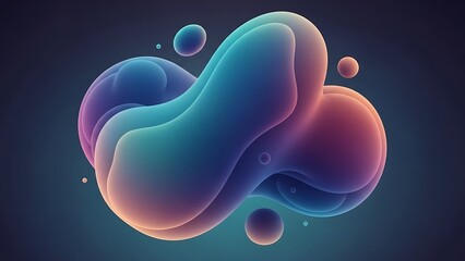 Abstract fluid blobs with smooth gradients of purple, blue, and pink against a dark background.